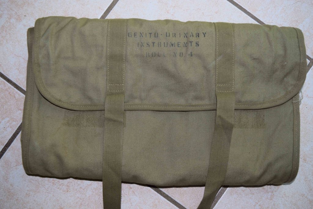Housse médicale US n°4 en toile OD. Les sangles de fermeture sont complètes. Marquage sur le rabat Genito Urinary Instruments Roll n°4. Les emplacements pour les divers instruments sont présents.Très belle pièce en très bon état. Vendue !!! Trop tard !!! Prix : 69 € – vendue